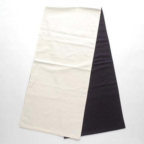 使用するコットン100%のフランネル素材は非常にソフトで生地特有の毛羽たちで首元を保温してくれます。また反対面には福岡の宮田織物の久留米織の生地を使用、コットン100%のサラッとした生地ながら刺し子のような表情のある生地との組み合わせで、両面を楽しむことが出来ます。