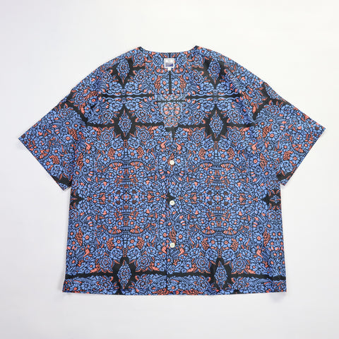 バリ島在住の染色家"YUKA UEDA"氏によりハンドプリントされた生地を使用し、ハンドメイドの色彩と素材感がオンリーワンな雰囲気を感じらるS/Sシャツです。