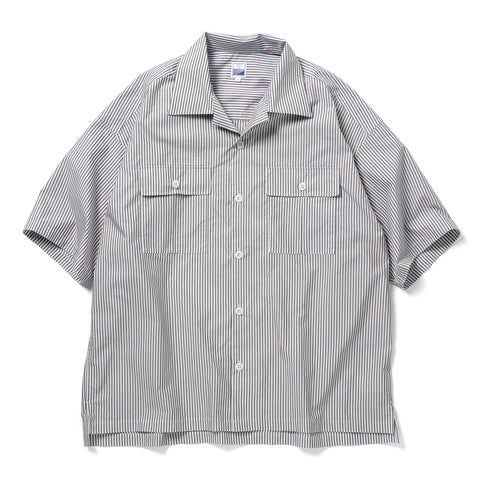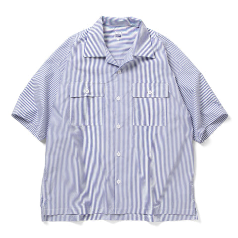 大きめに開いた袖口と、ゆとりある身幅と裾幅ですので、ふわっと風を受けて涼しく感じます。夏の暑い日に涼しい顔して半袖シャツを着ていただけたらと。