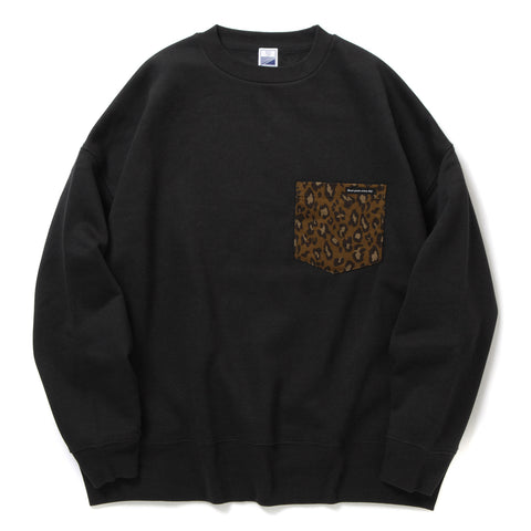 LOOSE SWEAT CREW W/PKT - BLACK × LEOPARD