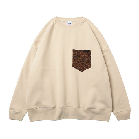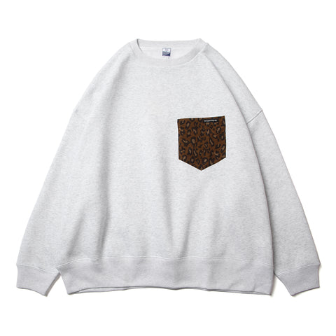 LOOSE SWEAT CREW W/PKT - ASH × LEOPARD